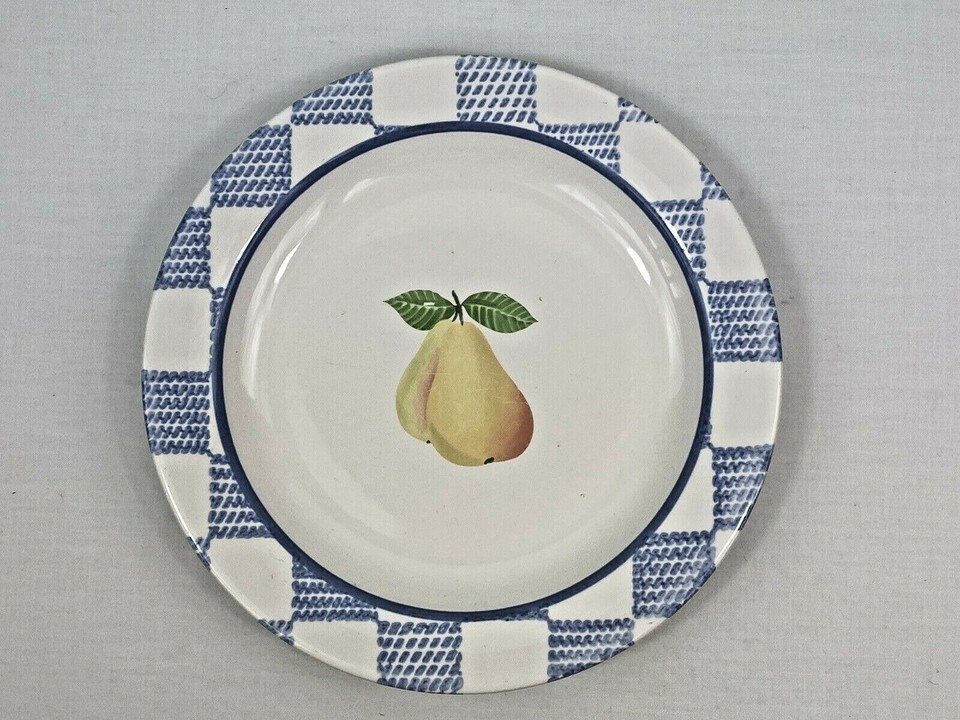 - Pfaltzgraff Hopscotch Fruit 8" Plate Pear - Blue Check Stoneware