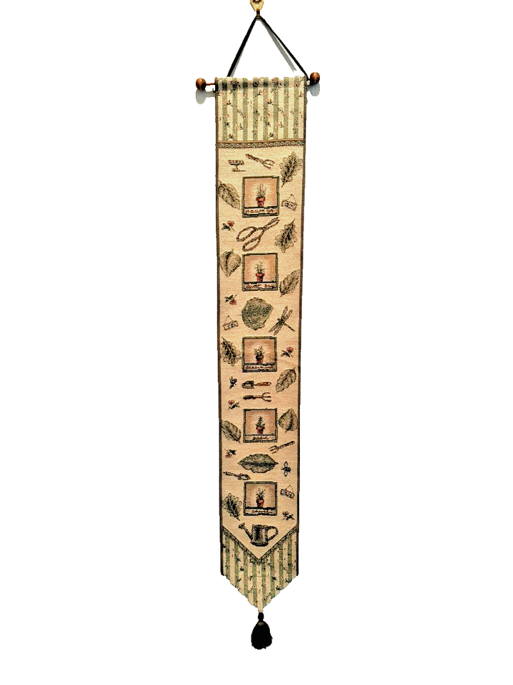 Pfaltzgraff Naturewood Bell Pull Tapestry Wall Hanging – 6.75x41 –Vintage Garden