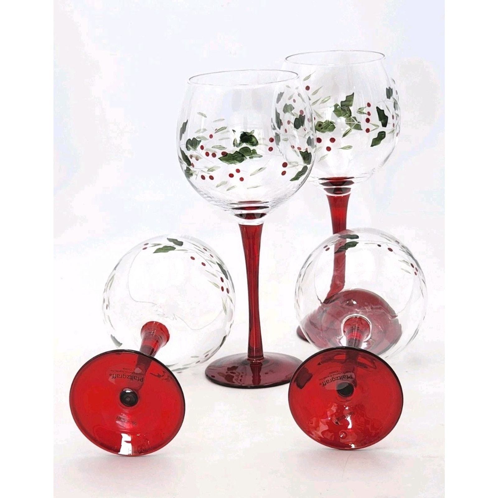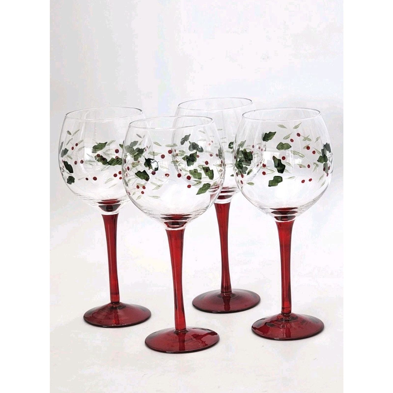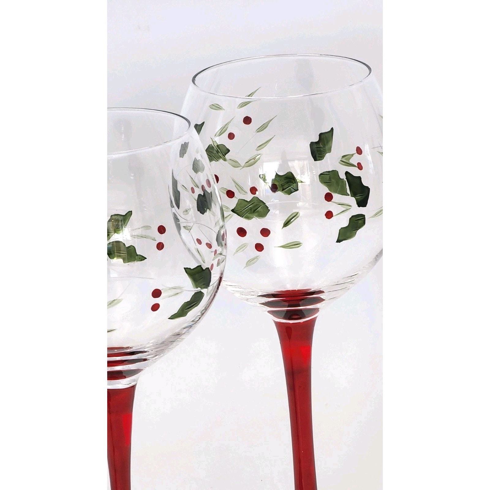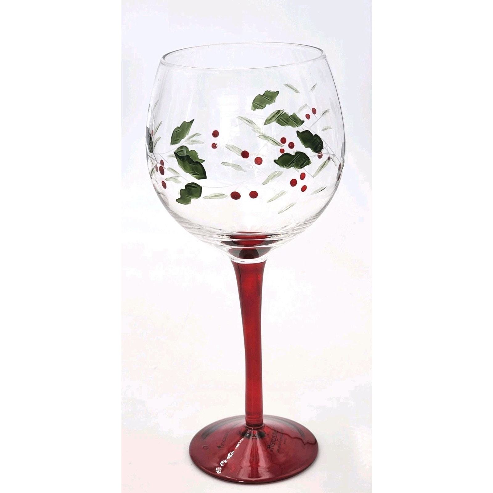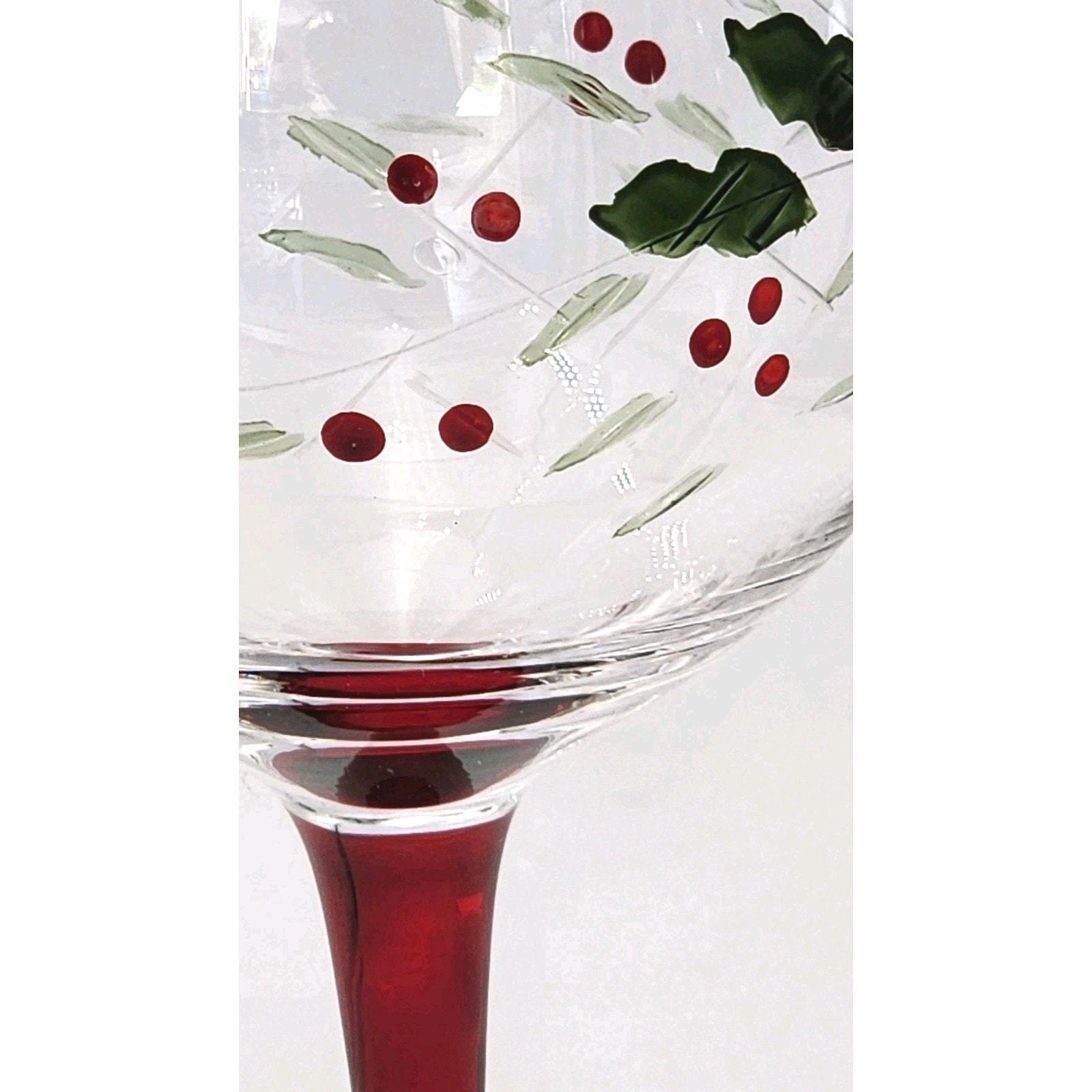 - Pfaltzgraff Winterberry Wine Goblet Set Of 4 Etched and Handed Painted Holly Red