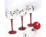 Pfaltzgraff Winterberry Wine Goblet Set Of 4 Etched and Handed Painted Holly Red