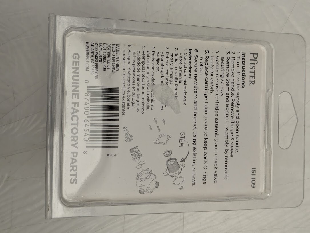 Pfister OEM (original equipment manufacture) 971-250 valve stem assembly. Used to replace worn or damaged assemblies in 08 series Pfister tub/shower faucets. Durable plastic construction for years of reliable use.