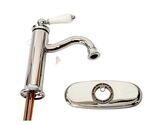 Single handle bathroom sink faucet: faucet mounted on sink deck or countertop; includes valve and cartridge, single post mounting ring, and decorative deck plate