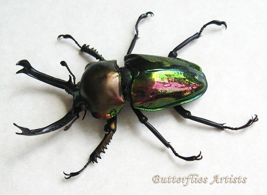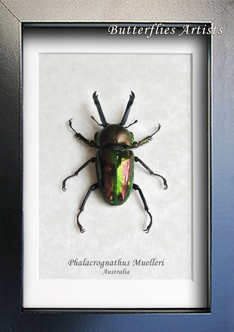 - Phalacrognathus Muelleri VERY RARE Rainbow Stag Beetle Framed Entomology Display