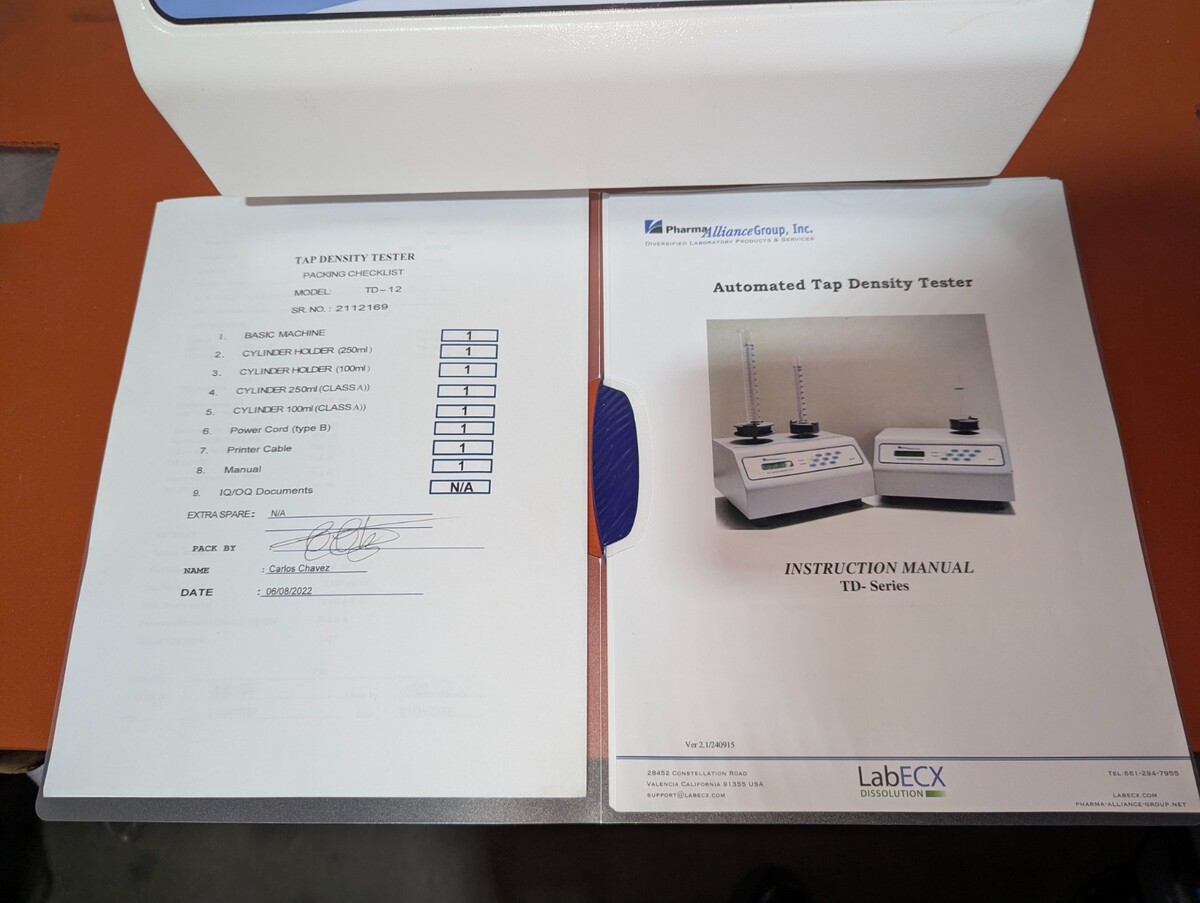 - Pharma Alliance Group TD-12 Tap Density Tester USP 1 & 2 with Cylinders / TESTED