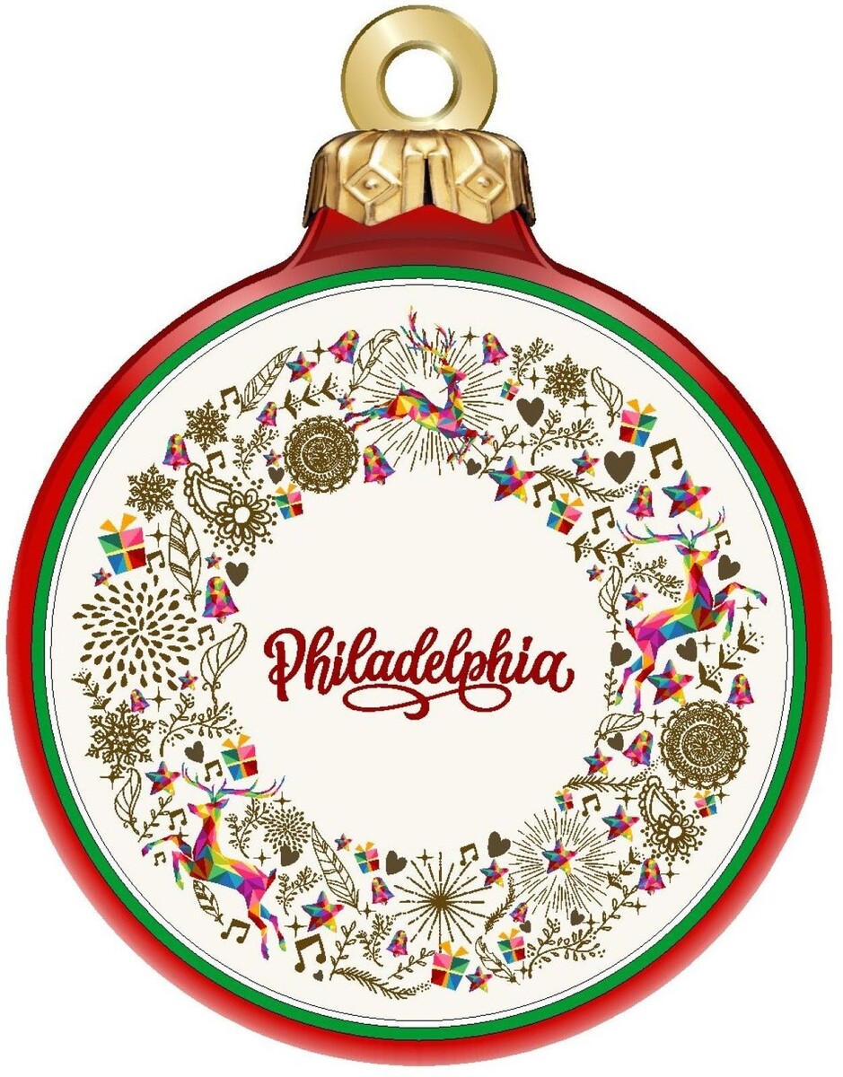 - Philadelphia with Christmas Border Christmas Tree Ornament