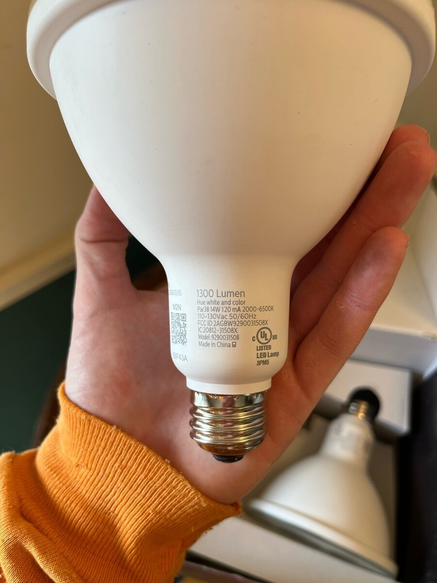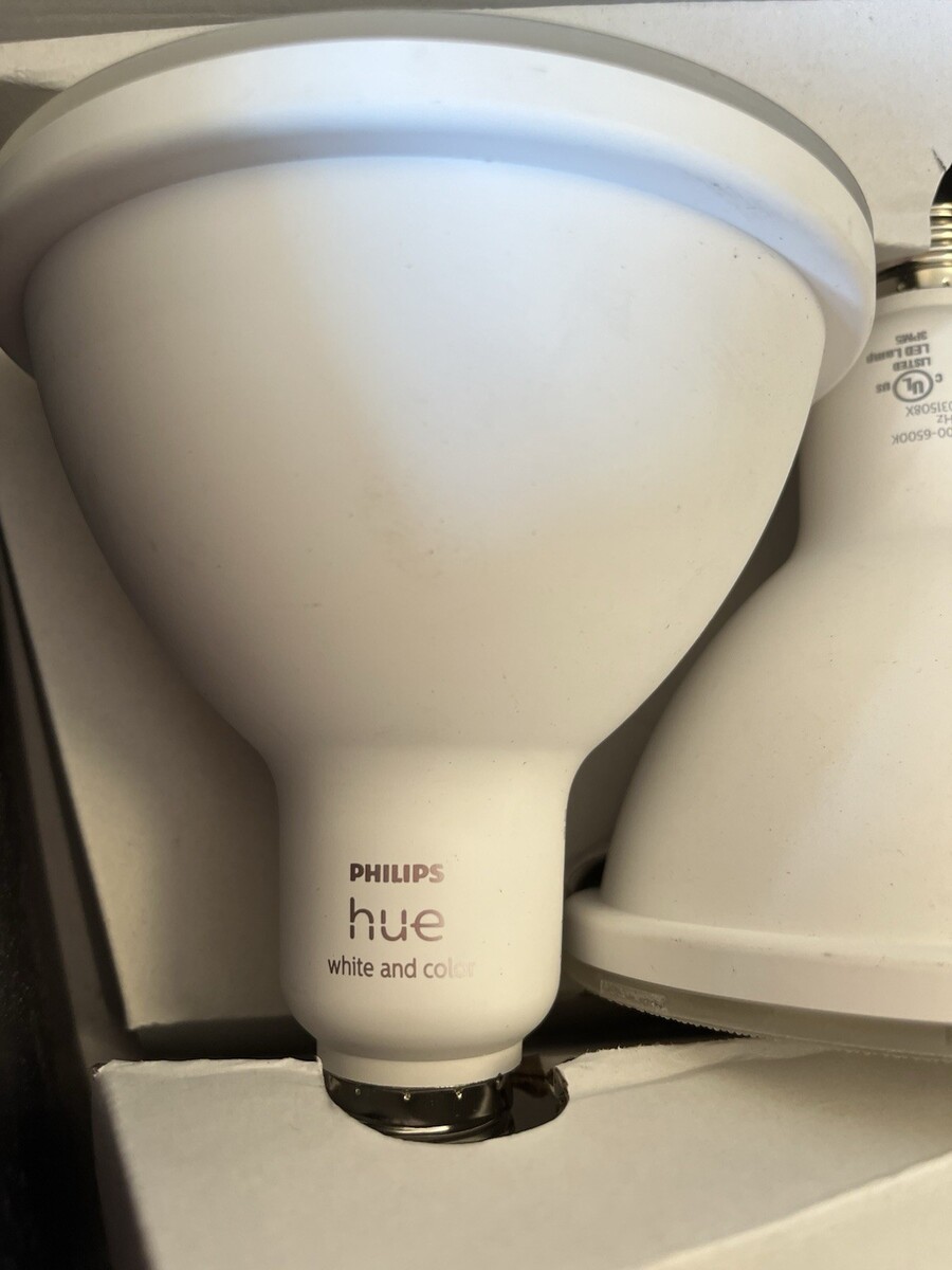 - Philips Hue 100W 1300 Lumen PAR38 Smart Waterproof Full Color Light Bulb, OB