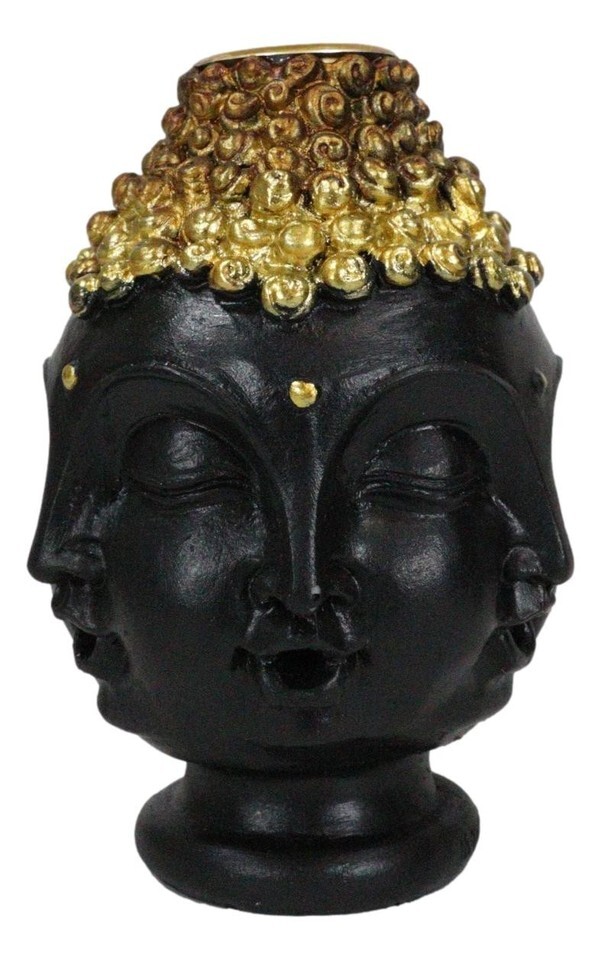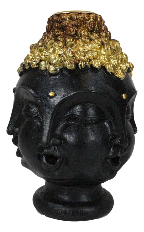 ? This Four Faced Buddha Head sculpture is made of resin, hand painted and polished individually.