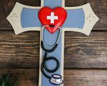 Ebros Physician Medic Blue Layered Wall Cross With Red Heart Stethoscope Doctor Nurse