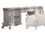 Features: Oversized Vanity Table 3 Drawer 1 Door (Inside 1 Wooden Shelf, 3 Adjustable Positions) Features: Bow-Front, Oversized Scrolled Poster-Leg, Antique Contrast Finish Wooden Case-Leg: Wood (Aspen/Poplar), Poly-Resin Moldings Oversized Scrolled Poly-Resin Poster-Leg Raised Molding Trim (Fronts/Base/Top) Set Includes: One (1) Vanity Table