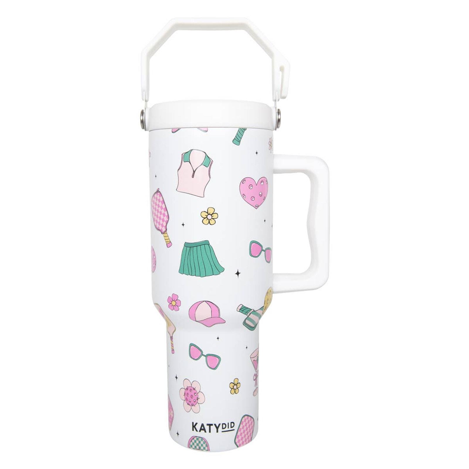 Pickleball Icons Girly Printed Stainless Steel Tumbler 38 oz with Handle