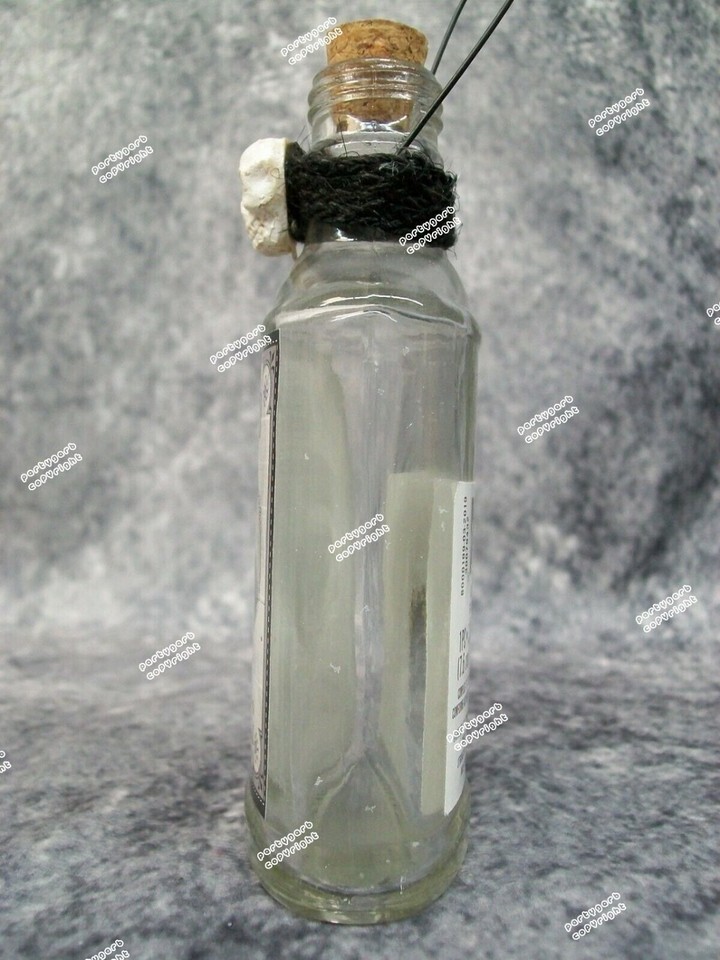 Clear Glass Elixir Bottle with Cork Plug / Stopper. Stopper feels like it is glued, it could probably be pulled loose if desired. Doesn't say anything about being food safe so I would assume that it is not and for decorative purposes only. Can be a handheld prop or used as a Halloween Prop or Decoration. For Adult Use. Unisex: