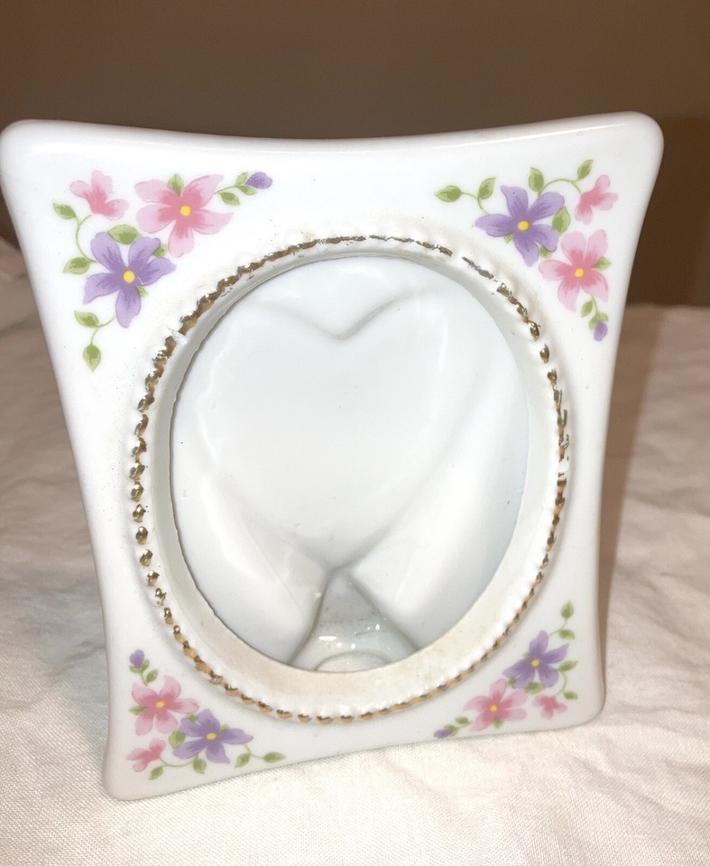 - Picture Frame free standing HEART on back Porcelain Vintage