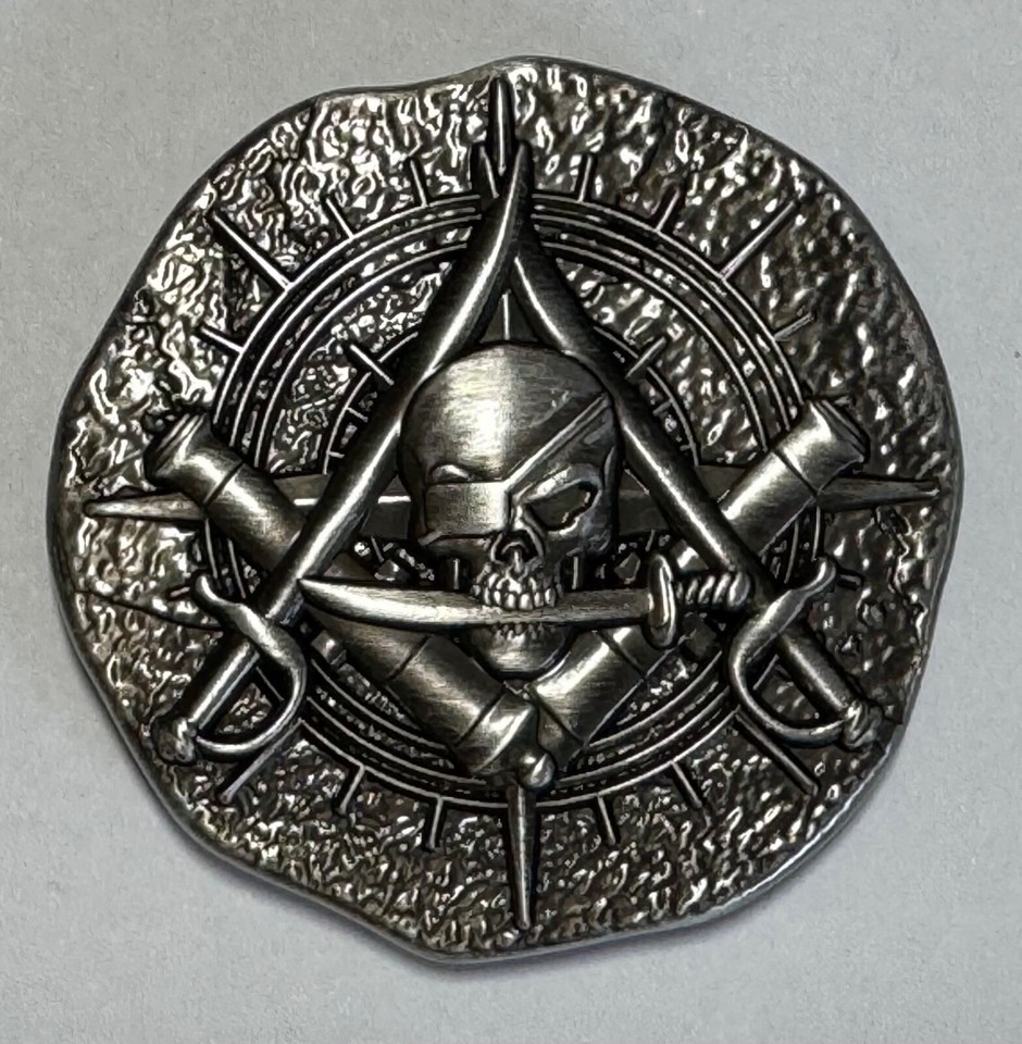 - Piece of Eight Pirate Challenge coin Freemason Masonic, 1.75", Antique silver