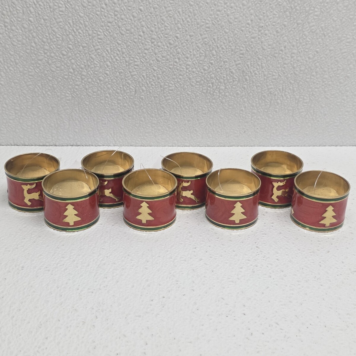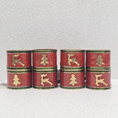 - Pier 1 Imports Holiday Napkin Rings Red Enameled Brass Tree Deer Set of 8