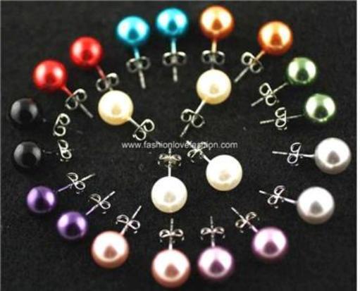 - Pierced Faux,Imitation Pearl Round Stud Earrings 14 Colors Small:8mm to XL:14mm
