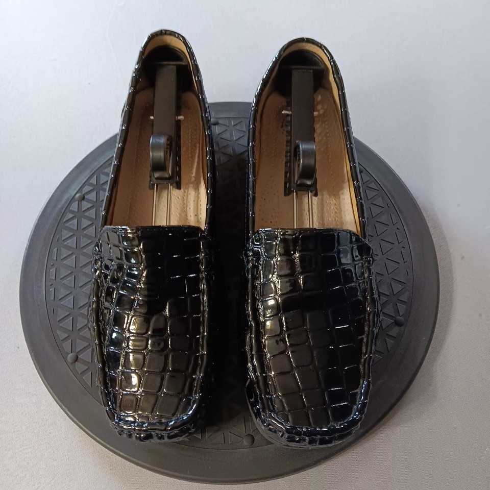 The Pierre Dumas Hazel 7 Women's Black Shoes are stylish slip-on loafers designed for women in size 10M. These versatile flats are perfect for various occasions such as travel, weddings, parties, casual outings, formal events, workwear, and business meetings. With a solid black color and cushioned comfort, these shoes from Pierre Dumas are a fashionable and practical choice for any season. Good condition with normal wear.