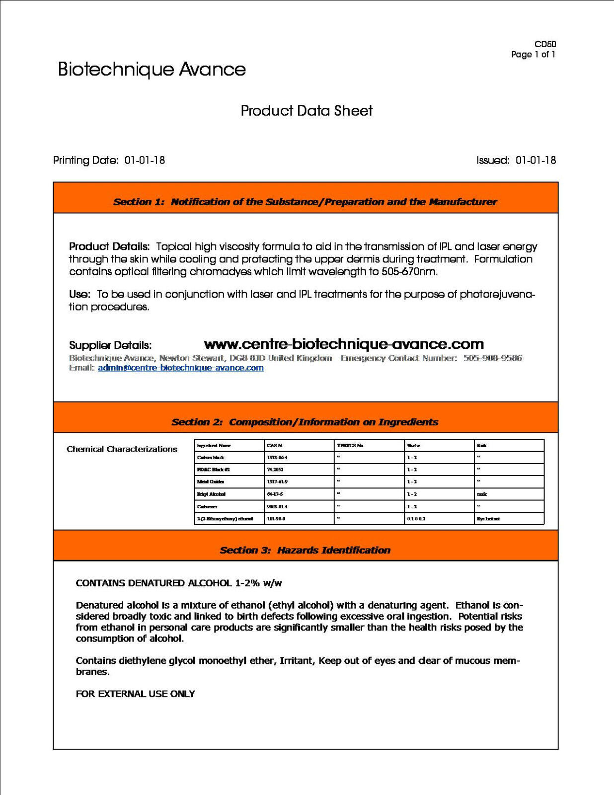 To be used in conjunction with laser and IPL treatments to increase patient comfort during hyper pigment reduction procedures. Filtering formula contains chromadyes which limit wavelength for optimal results.