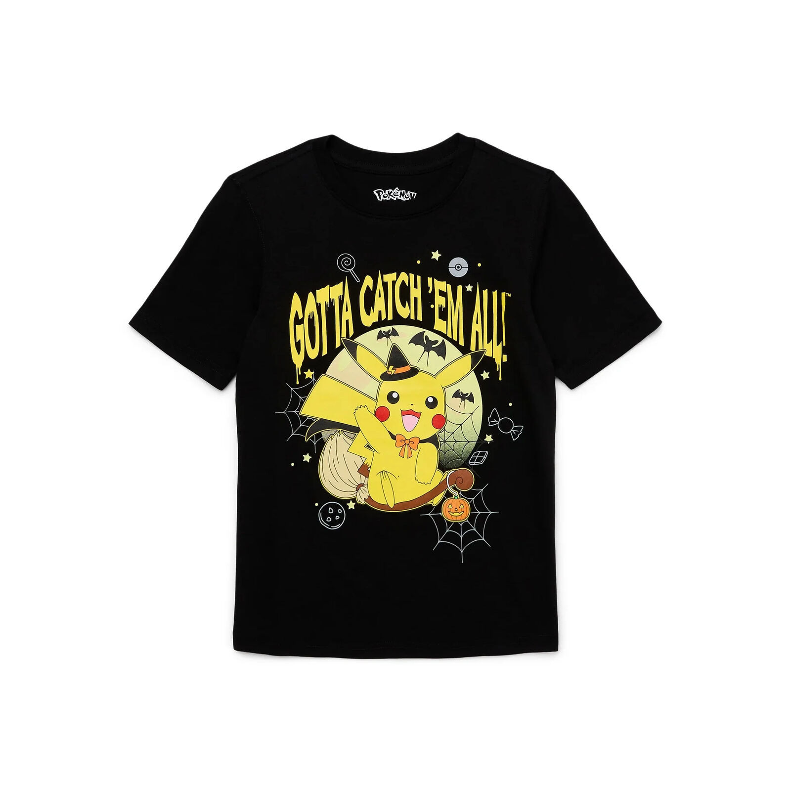 Who doesn't love Pikachu! Show your child's love of Pokemon in this short sleeve tee with front graphic design. This silhouette is a relaxed cotton poly blend with a fun Halloween inspired design. Pair this with his favorite choice of bottoms and be ready for all the Halloween festivies.