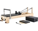 - Pilates Wood Reformer Home Gym System Resistance Bands Exercise Equipment