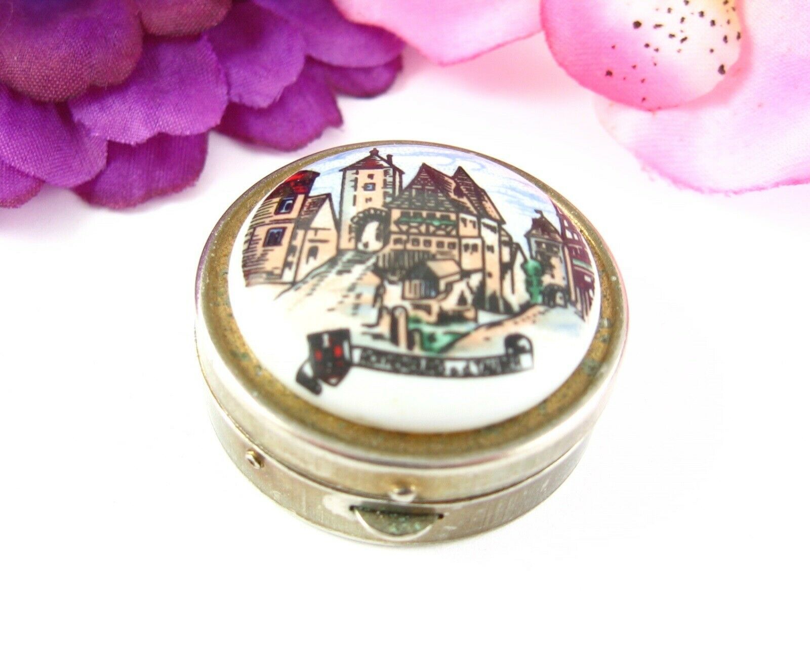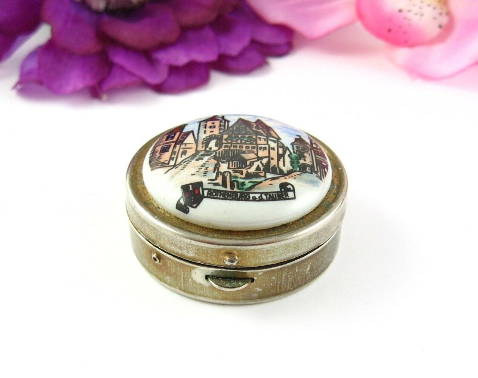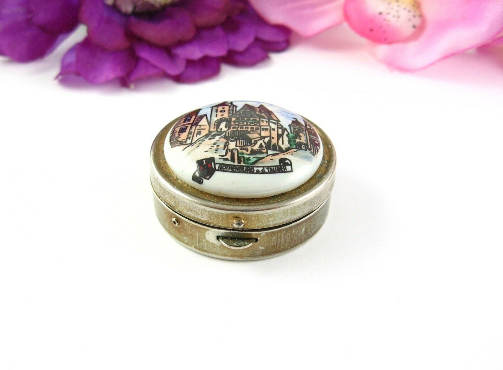 - PILLBOX Vintage ROTHENBURG ob der TAUBER Germany Souvenir Paint Porcelain Slvrtn