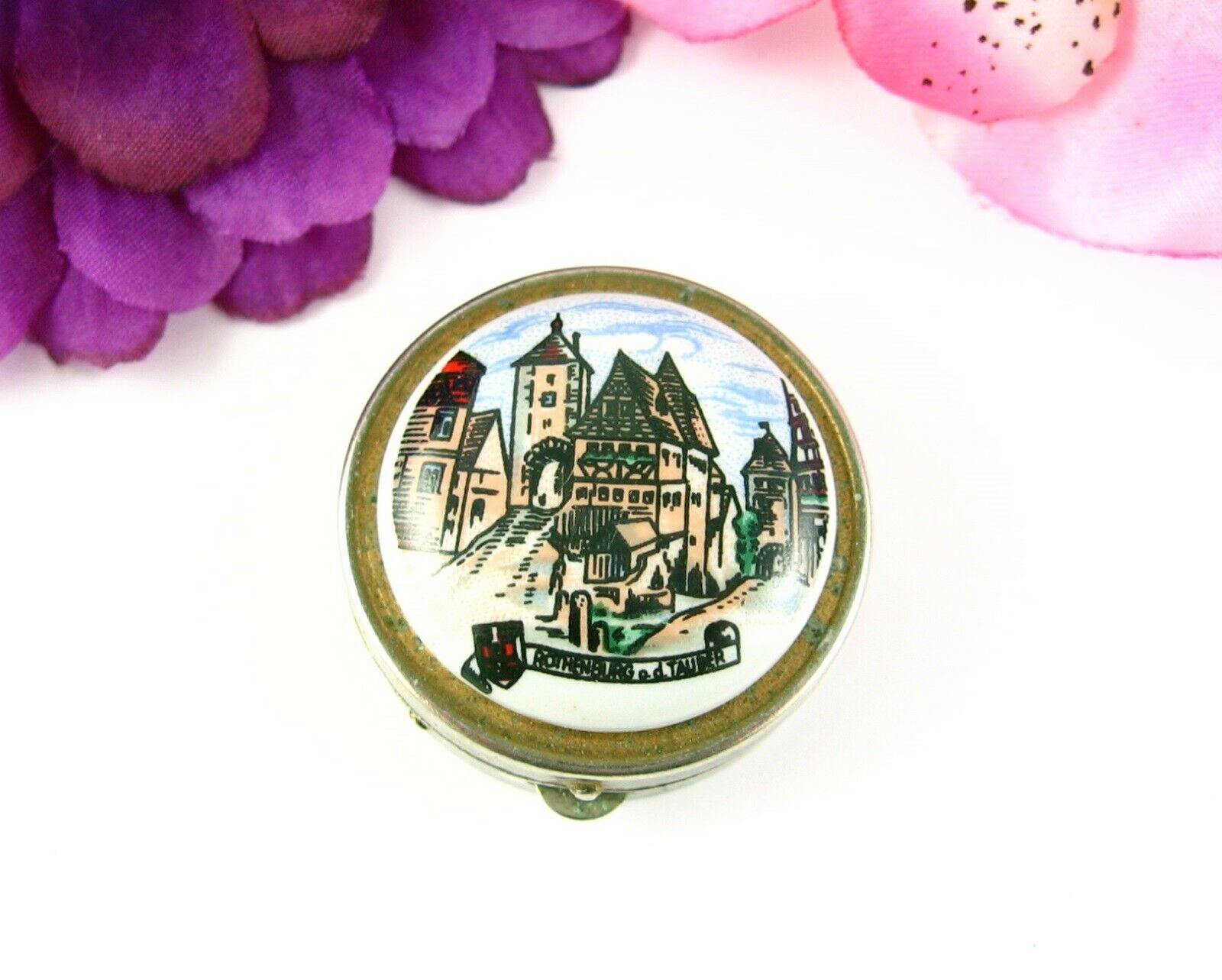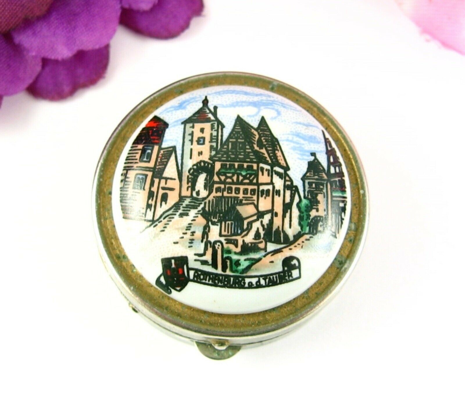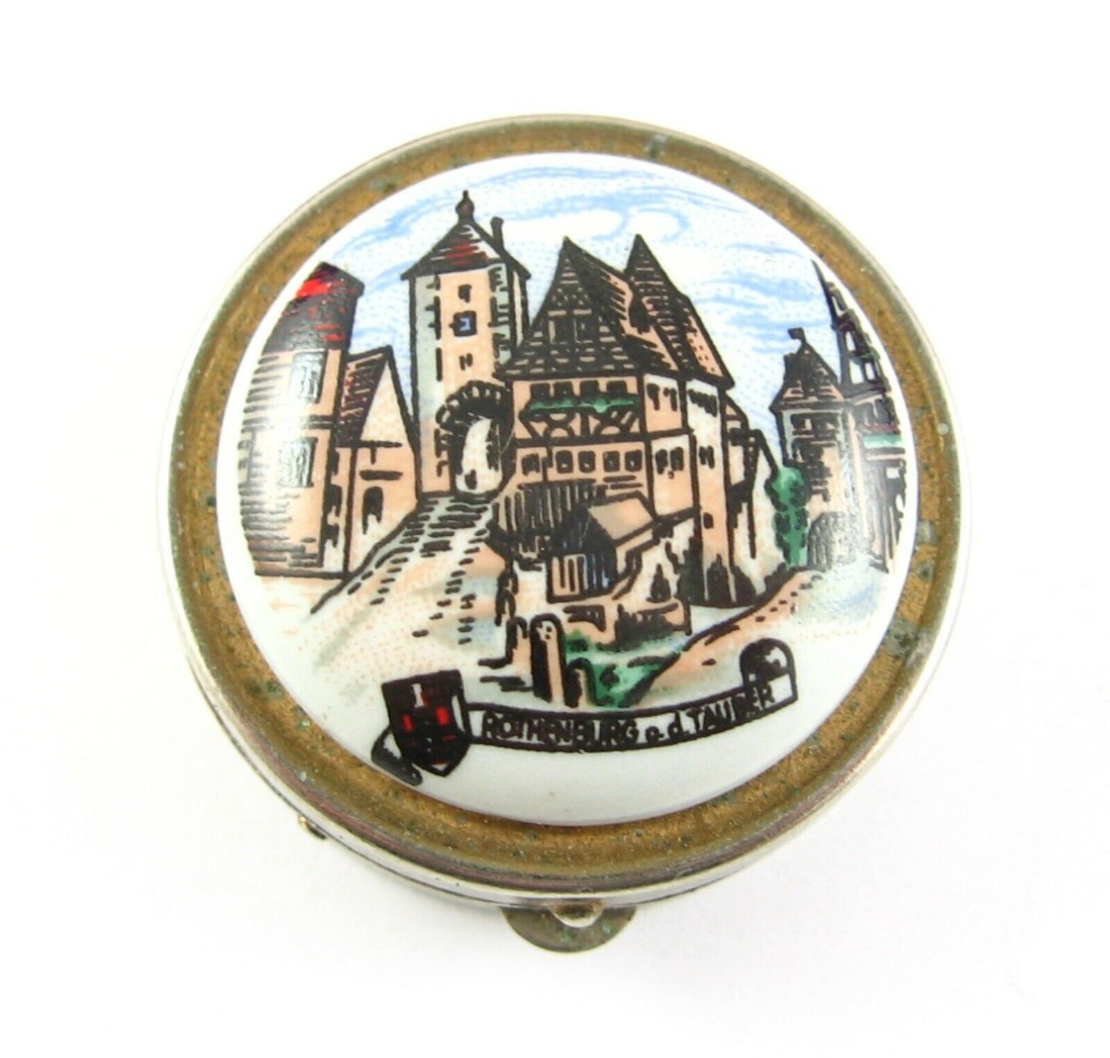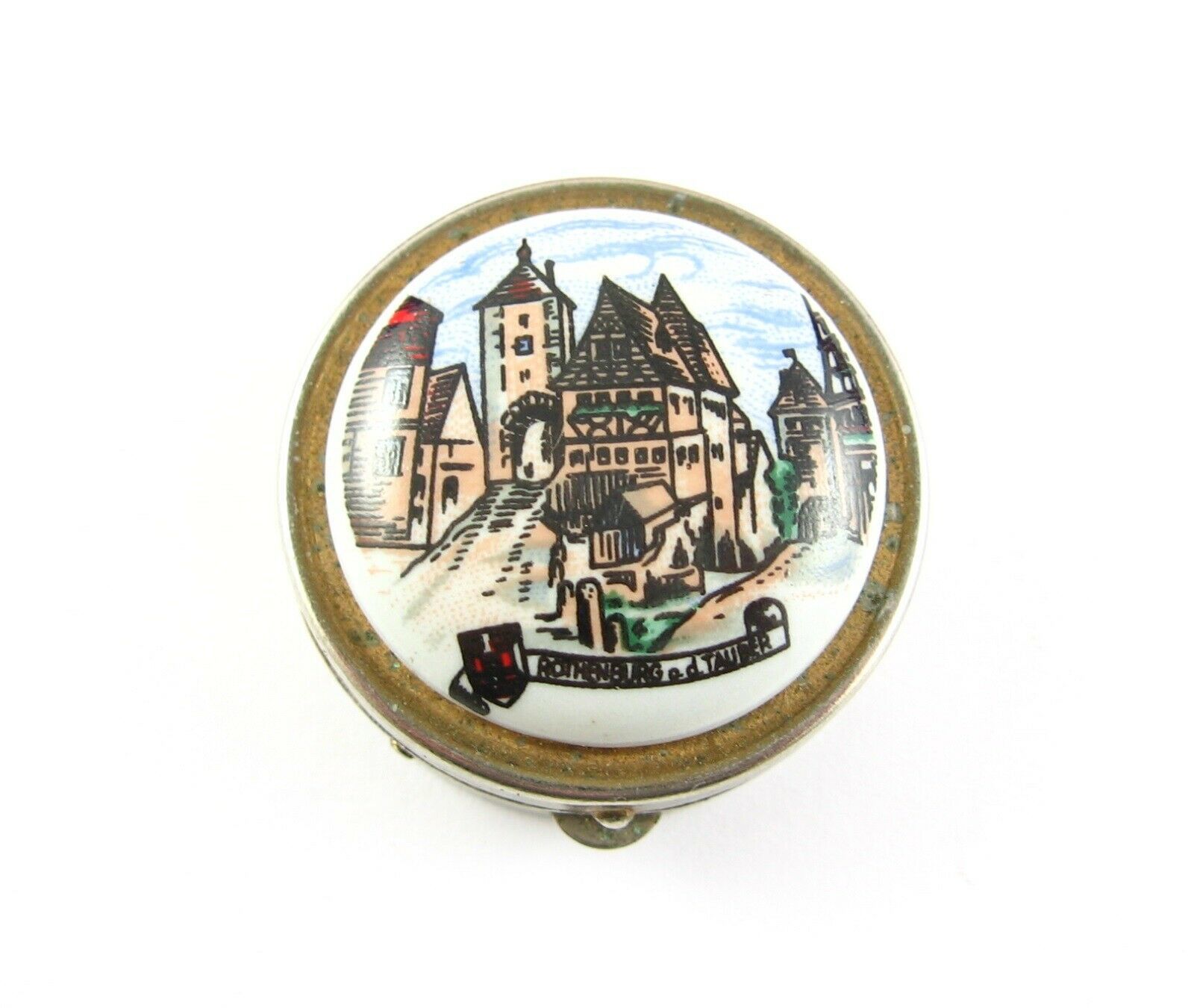 PILLBOX Vintage ROTHENBURG ob der TAUBER Germany Souvenir Paint Porcelain Slvrtn