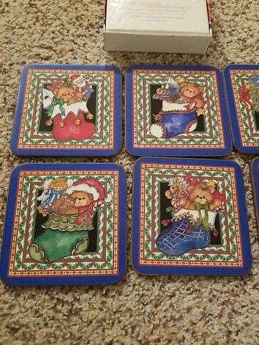 - Pimpernel Christmas Bears In Stockings Coasters Holiday Made in England With Box