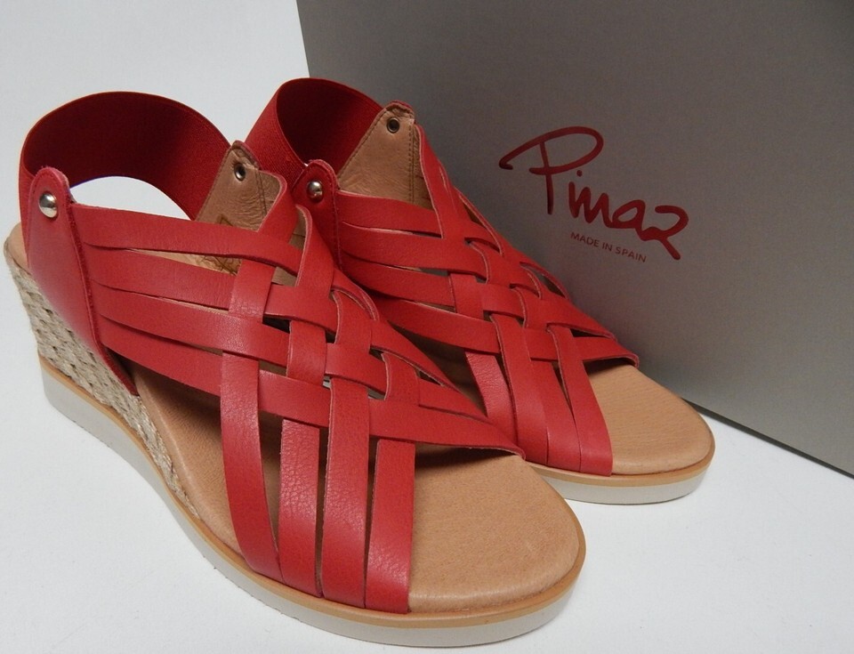 - Pinaz Size EU 36 M (US 5.5-6) Women's Leather Espadrille Wedge Sandals Rojo
