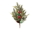 Elevate your holiday decor with this set of two Pine and Ornament Sprays, featuring lush green pine branches accented with pinecones, berries, and festive ball ornaments. With earthy green and brown tones and variegated details, these sprays bring a classic Christmas charm to any seasonal display. The wired stems and branches provide flexibility for effortless styling perfect for wreaths, garlands, centerpieces, or festive porch pots.