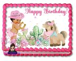 - Pink Baby Cowgirl Brown Themed Edible Image Pretty Dresses Birthday Cake Topper,