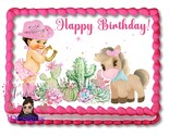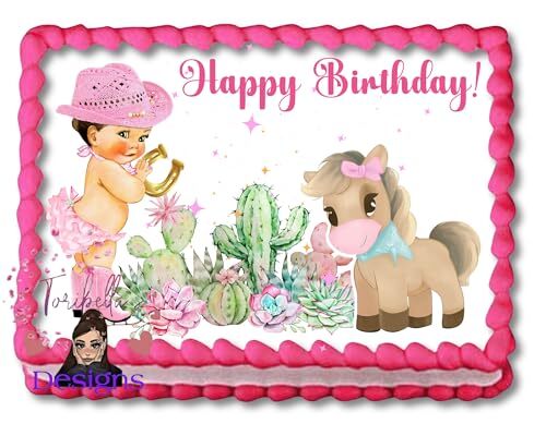 - Pink Baby Cowgirl Brunette Themed Edible Image Pretty Dresses Birthday Cake Topp