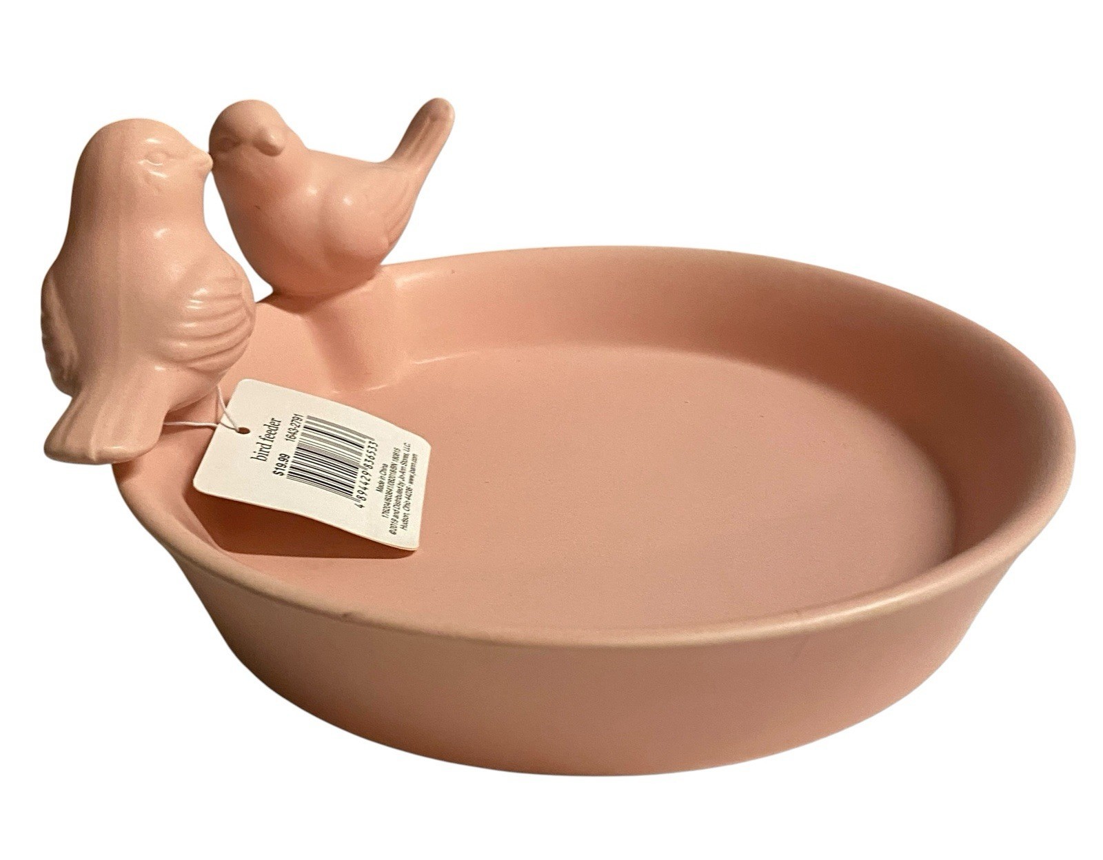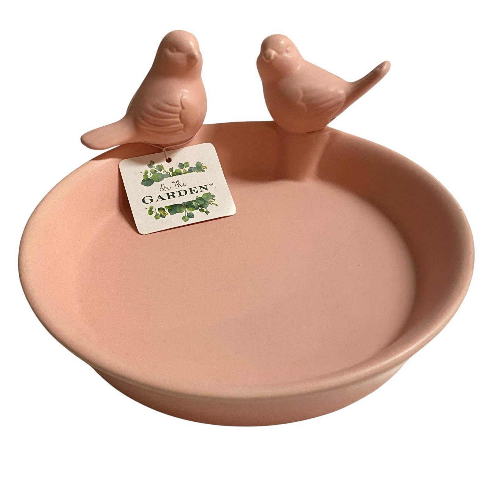 Pink Ceramic Bird Bath Feeder 2 Birds New