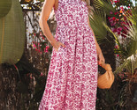 - Pink Floral Cutout Back Empire Waist Sleeveless Maxi Dress