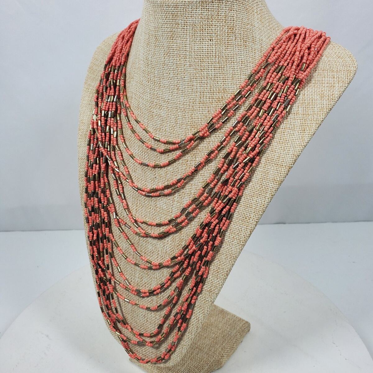 - Pink & Gold Draping Statement Necklace Multi Strand 22 Inch (Shortest Strand)