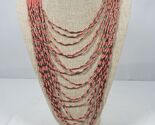 Pink & Gold Draping Statement Necklace Multi Strand 22 Inch (Shortest Strand)