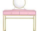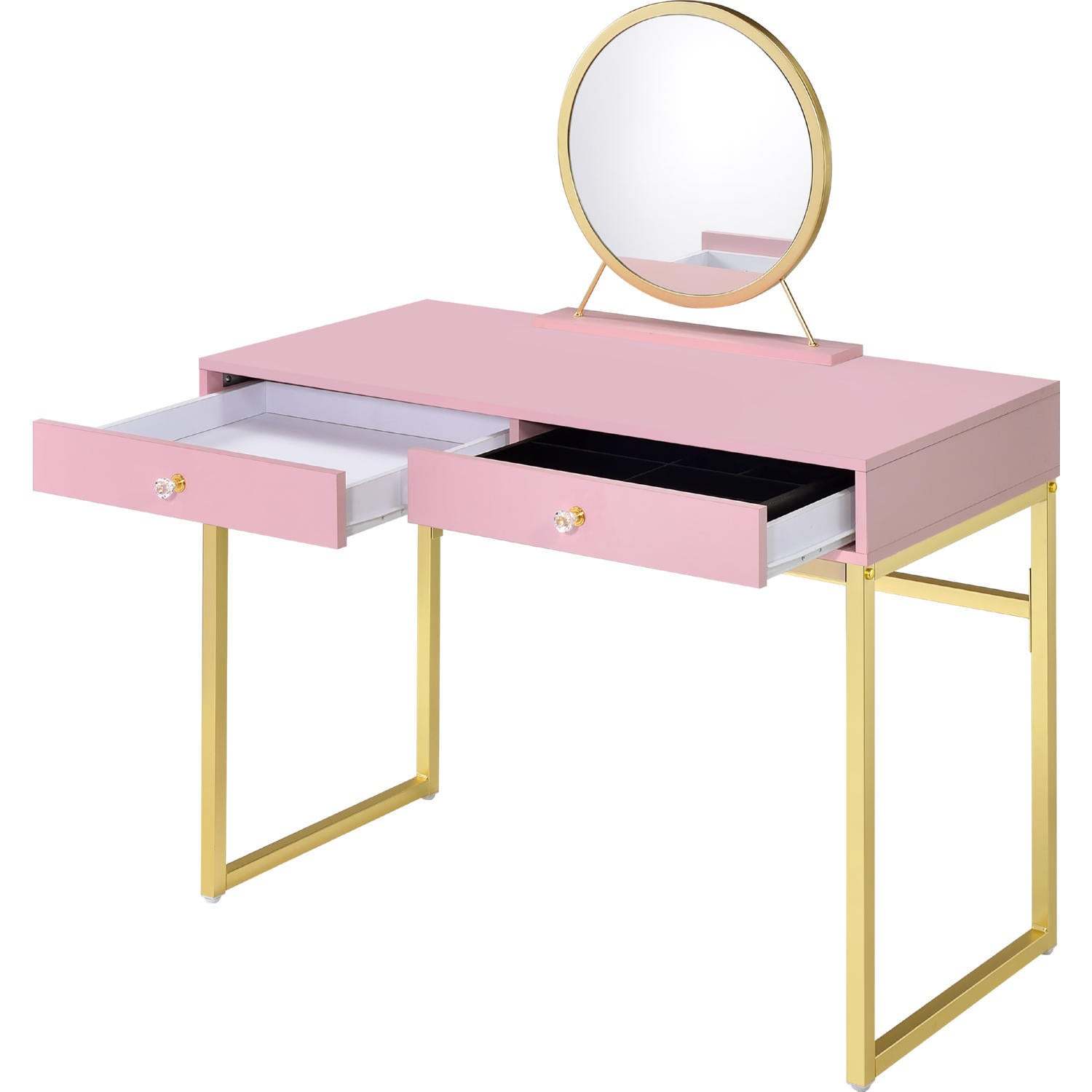 Pink & Gold Vanity Desk: 2 Drawers, Mirror & Jewelry Tray Storage