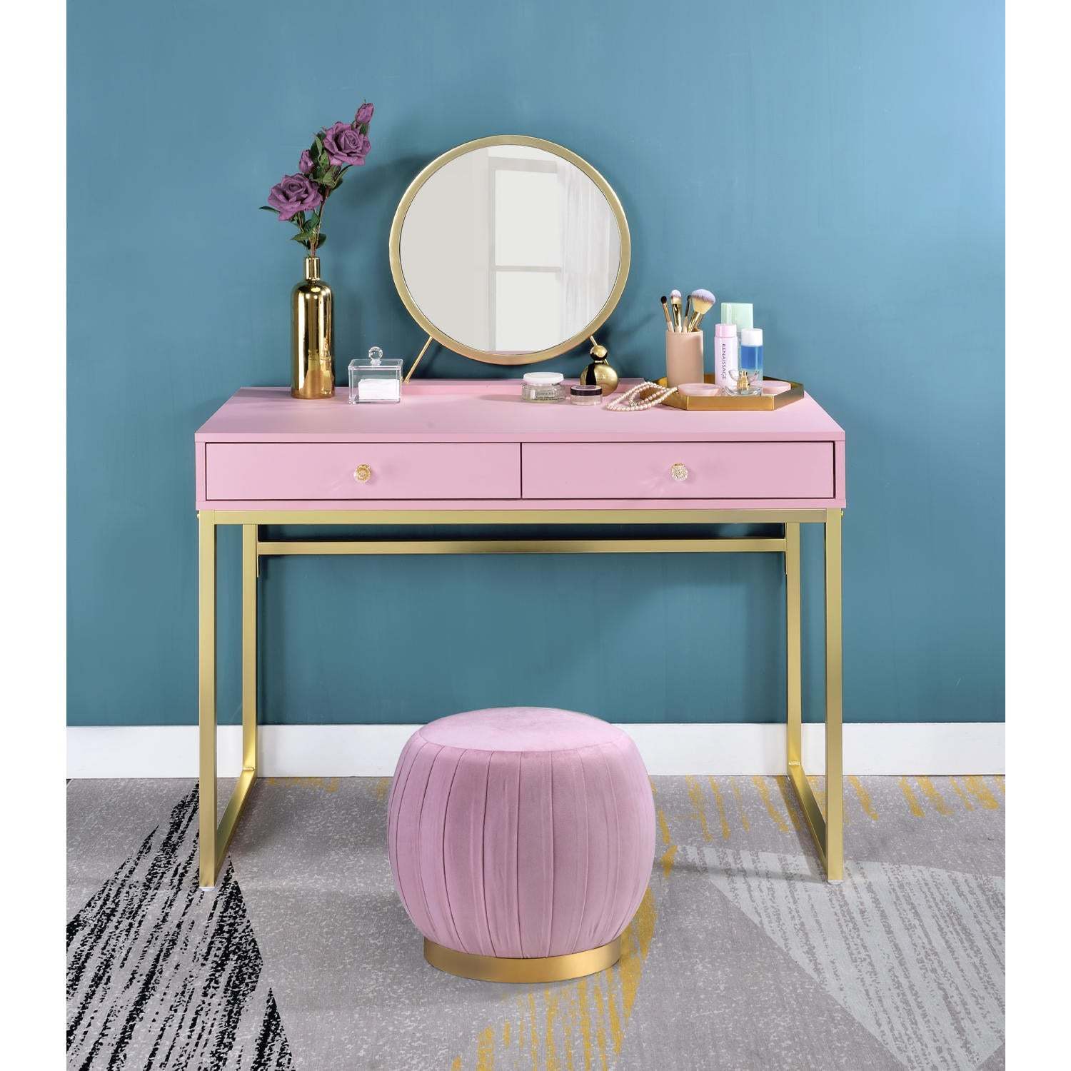 - Pink & Gold Vanity Desk: 2 Drawers, Mirror & Jewelry Tray Storage