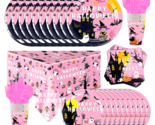 - Pink Halloween Party Day Supplies for 24 Guests Tableware Plates Cups Set Kids