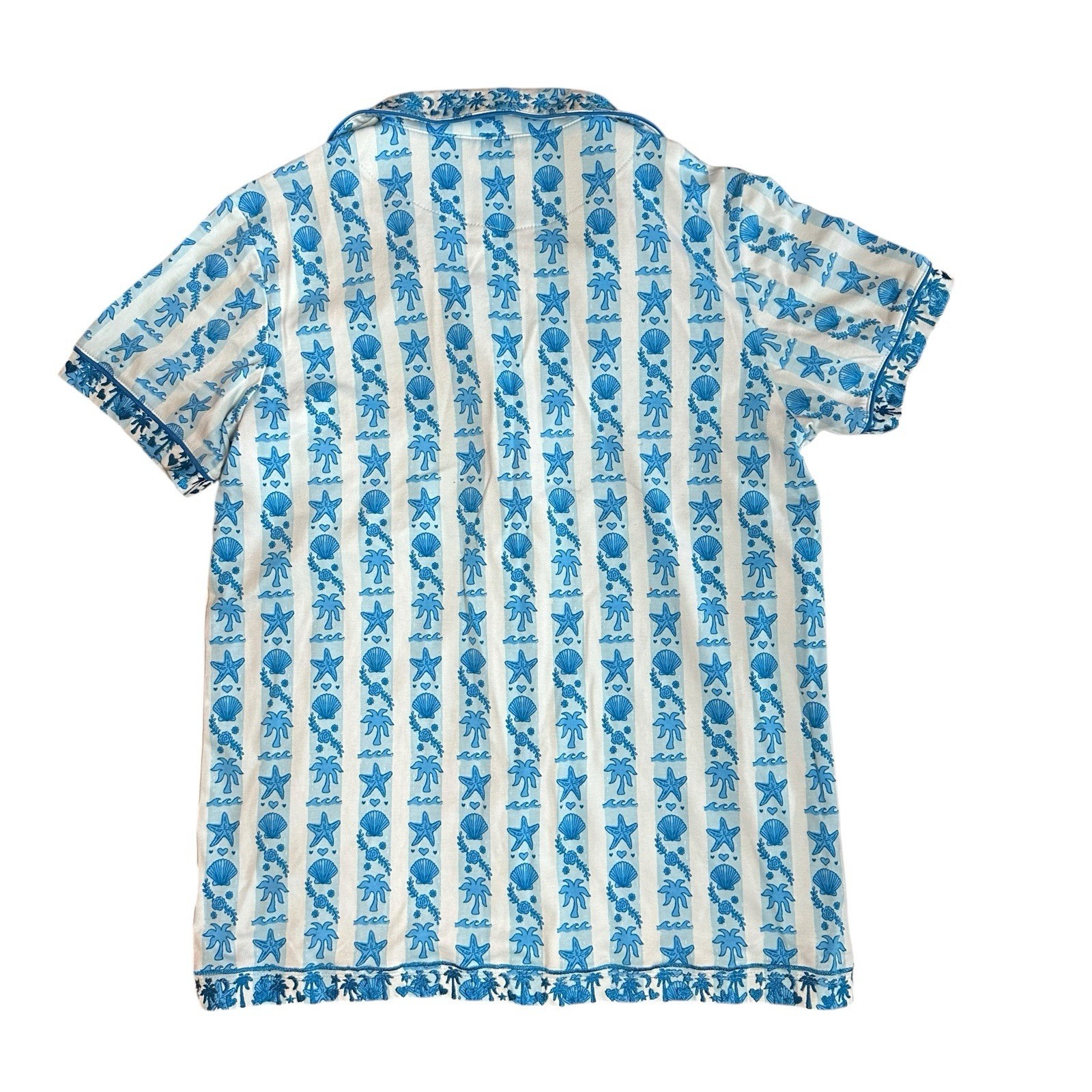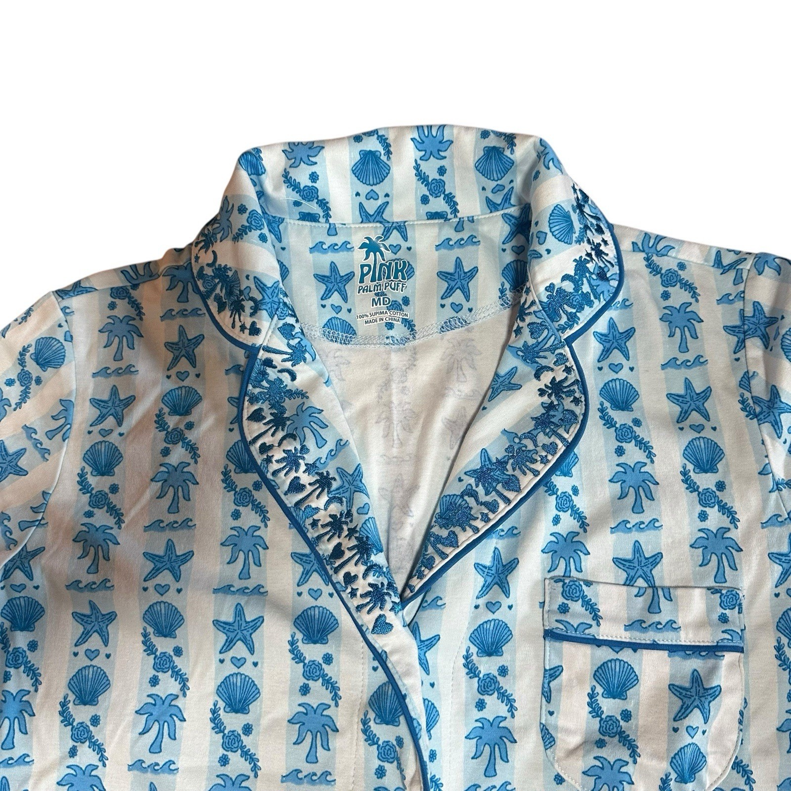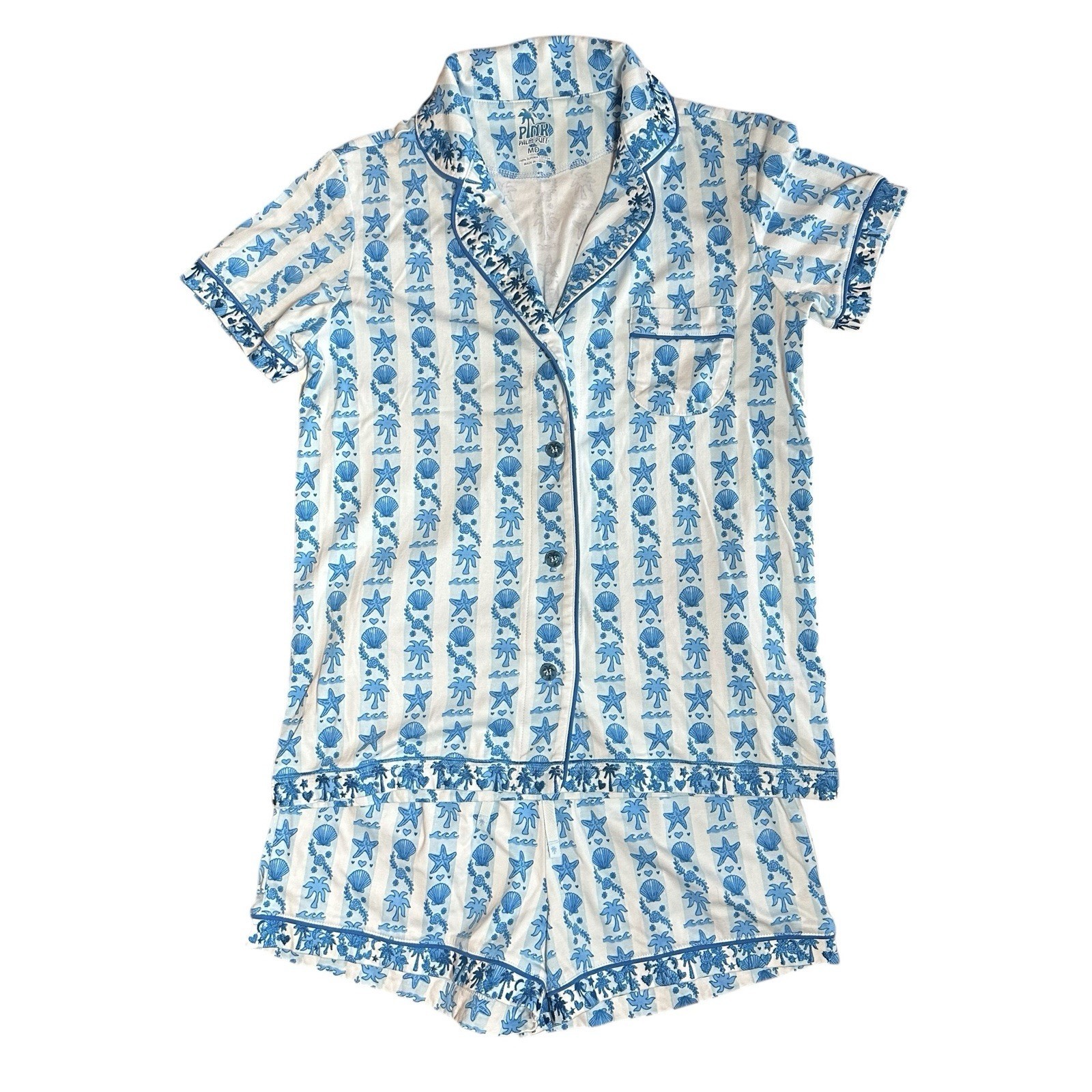 Pink Palm Puff Pajamas in Seabreeze BLUE Size M Supima Cotton Short Set NEW