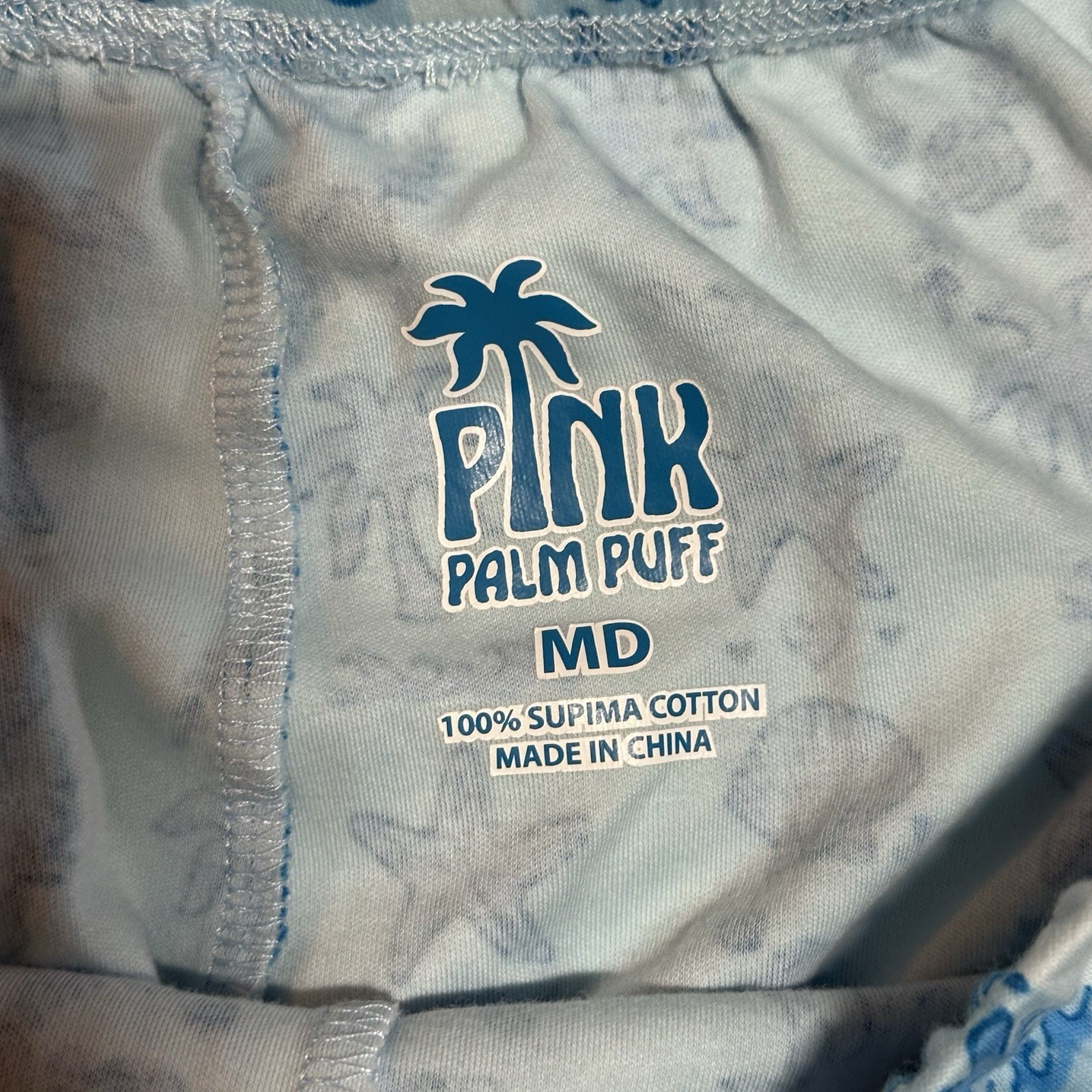 Pink Palm Puff Pajamas in Seabreeze BLUE Size M Supima Cotton Short Set