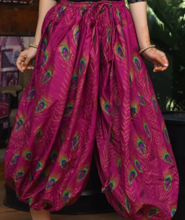 TRIBAL BELLYDANCE ATS FABULOUS FUSHIA PINK PEACOCK PRINT EARTHY GYPSY PANTALOONS