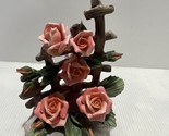 Pink Roses Centerpiece Italian Capodimonte On a Fence/ Lattice Post 6 1/2"