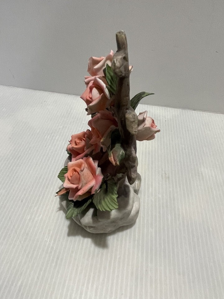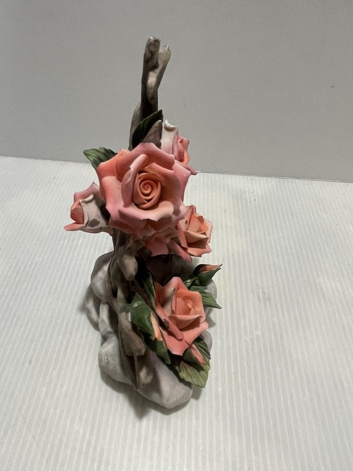 Pink Roses Centerpiece Italian Capodimonte On a Fence/ Lattice Post