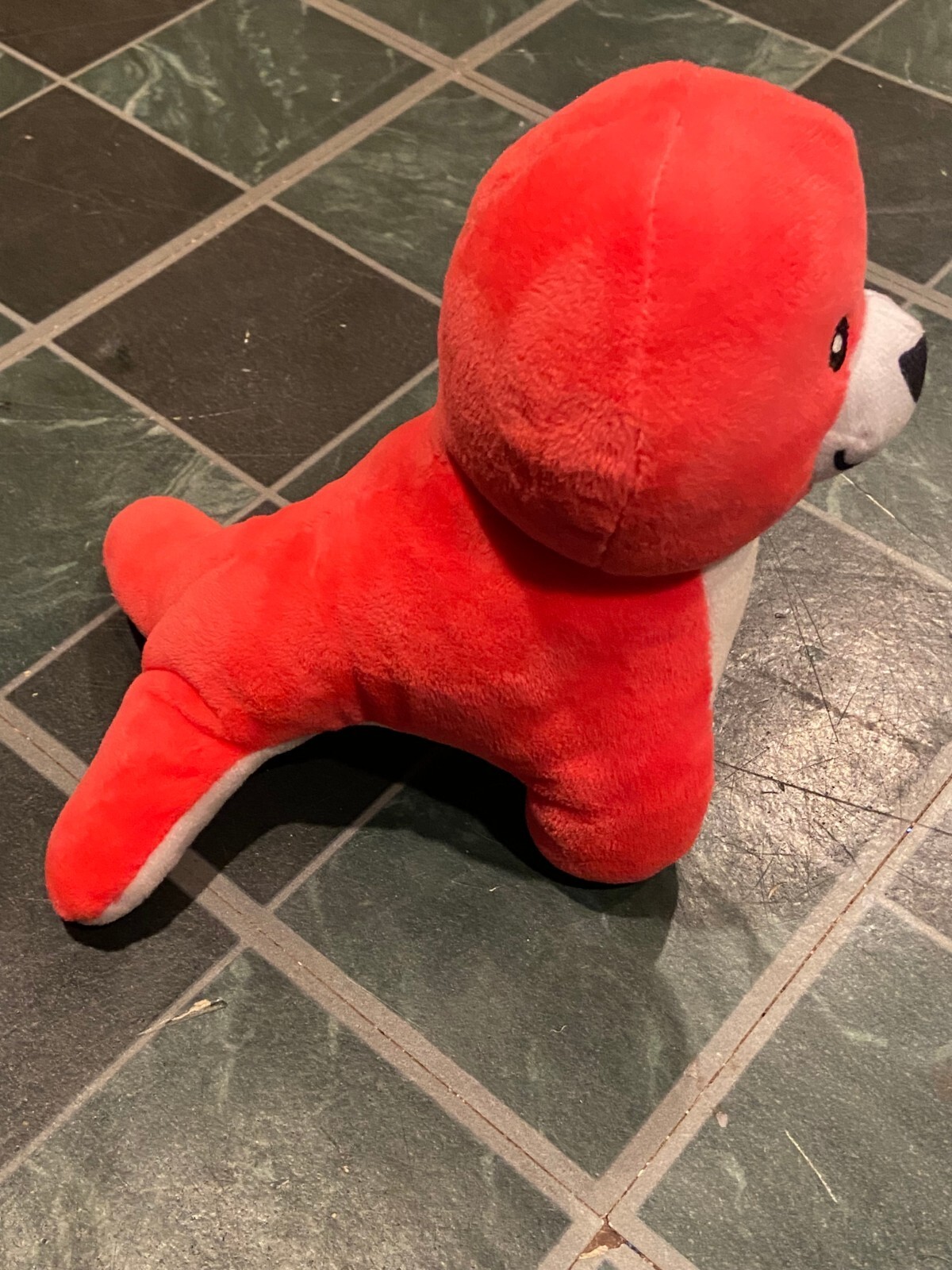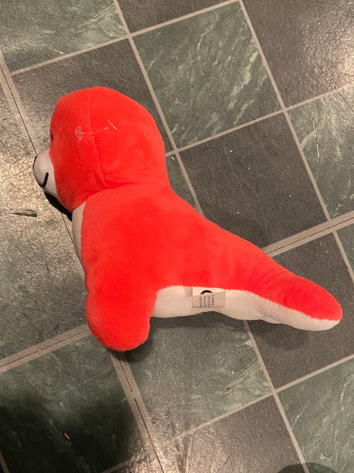 The pink seal plush is pre-owned with no tag. The pink seal has a cute smiling face.