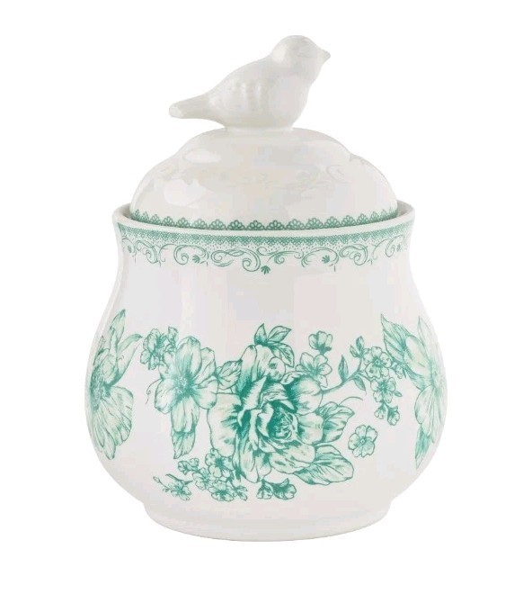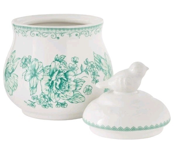 - Pioneer Woman ~ AGATHA ~ Stoneware ~ Sugar Bowl w/Lid ~ Sugar Pot ~ GREEN