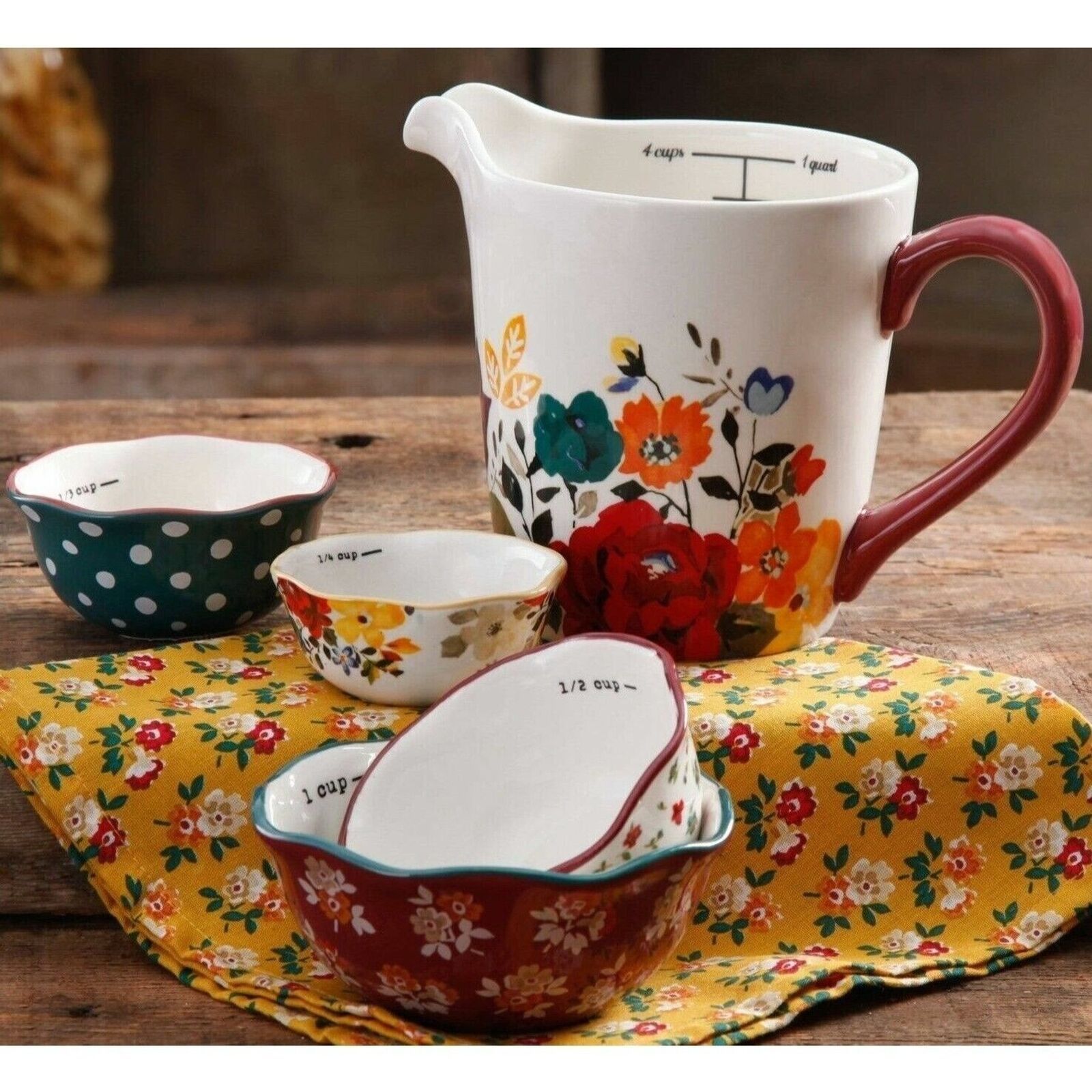 - Pioneer Woman Autumn Harvest Measuring Cup Bowls Timeless Floral Stoneware 5-pc
