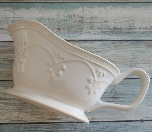 - Pioneer Woman ~ Farmhouse Lace ~ Stoneware ~ Embossed ~ Off White ~ Gravy Boat