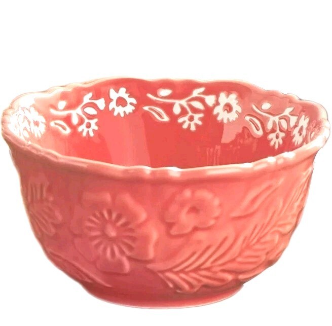 - Pioneer Woman ~ Floral Embossed ~ 6" Diameter Serving Bowl ~ Stoneware ~ CORAL