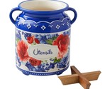 Pioneer Woman Heritage Floral Utensil Crock Blue Red Stoneware Wood Insert NEW