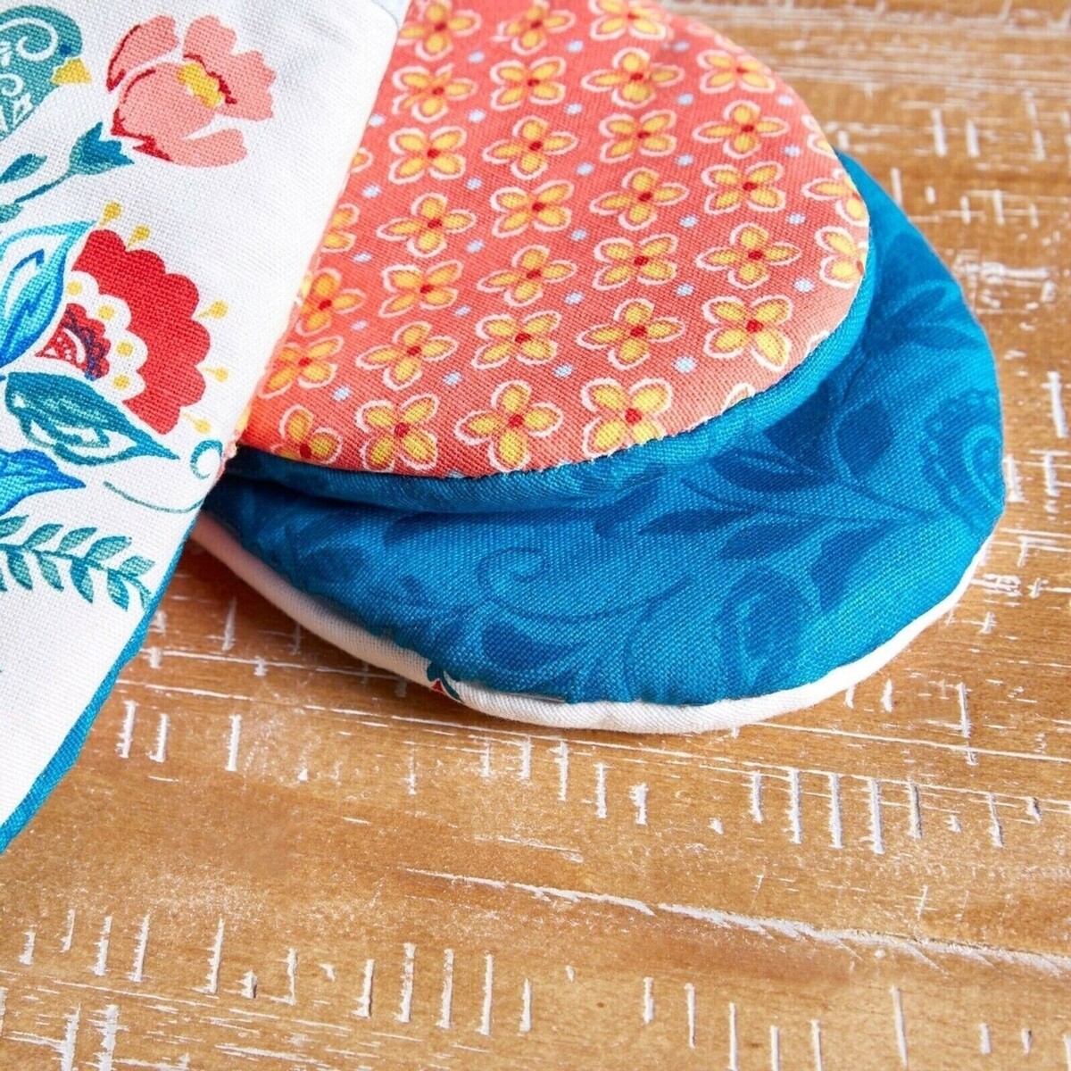 - Pioneer Woman Mazie Mini Oven Mitts 2-pc Floral Blue Bird Cotton Kitchen Gift
