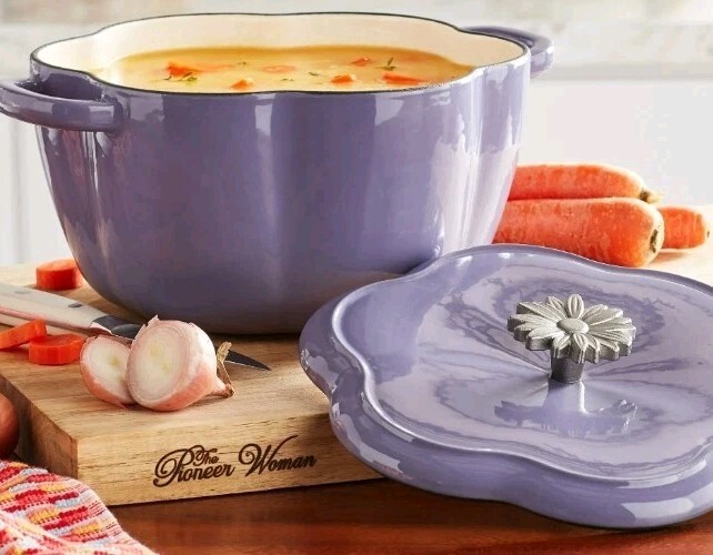 - Pioneer Woman PURPLE Flower ~ 3 Quart ~ Enameled ~ Cast Iron ~ Dutch Oven w/Lid